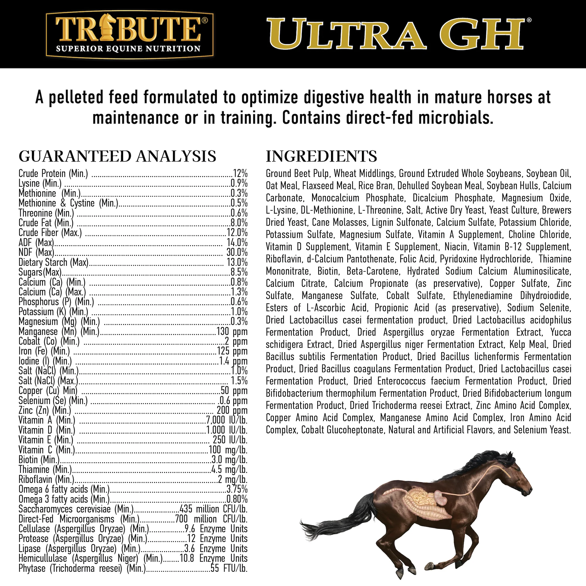 A higher fat, pelleted feed with added gastrointestinal support for hard-working horses.